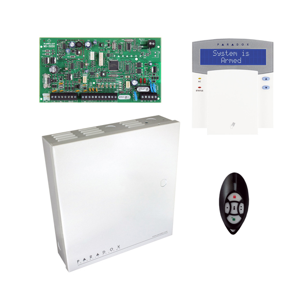 Paradox wireless MG5050 Panel with LCD Keypad mounting box and remote.